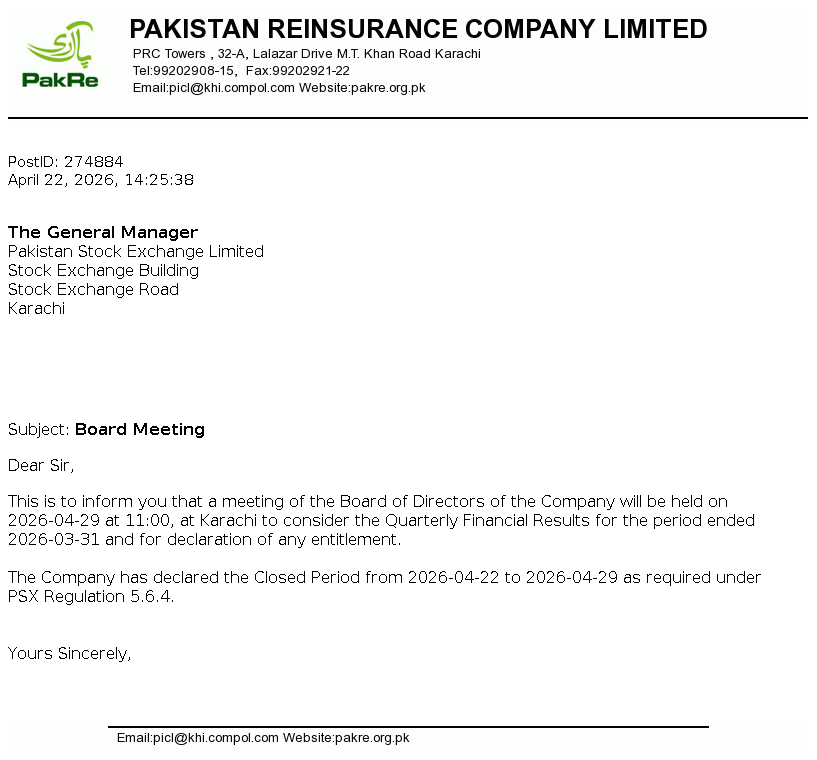 Board Meeting at 28-Apr-2026